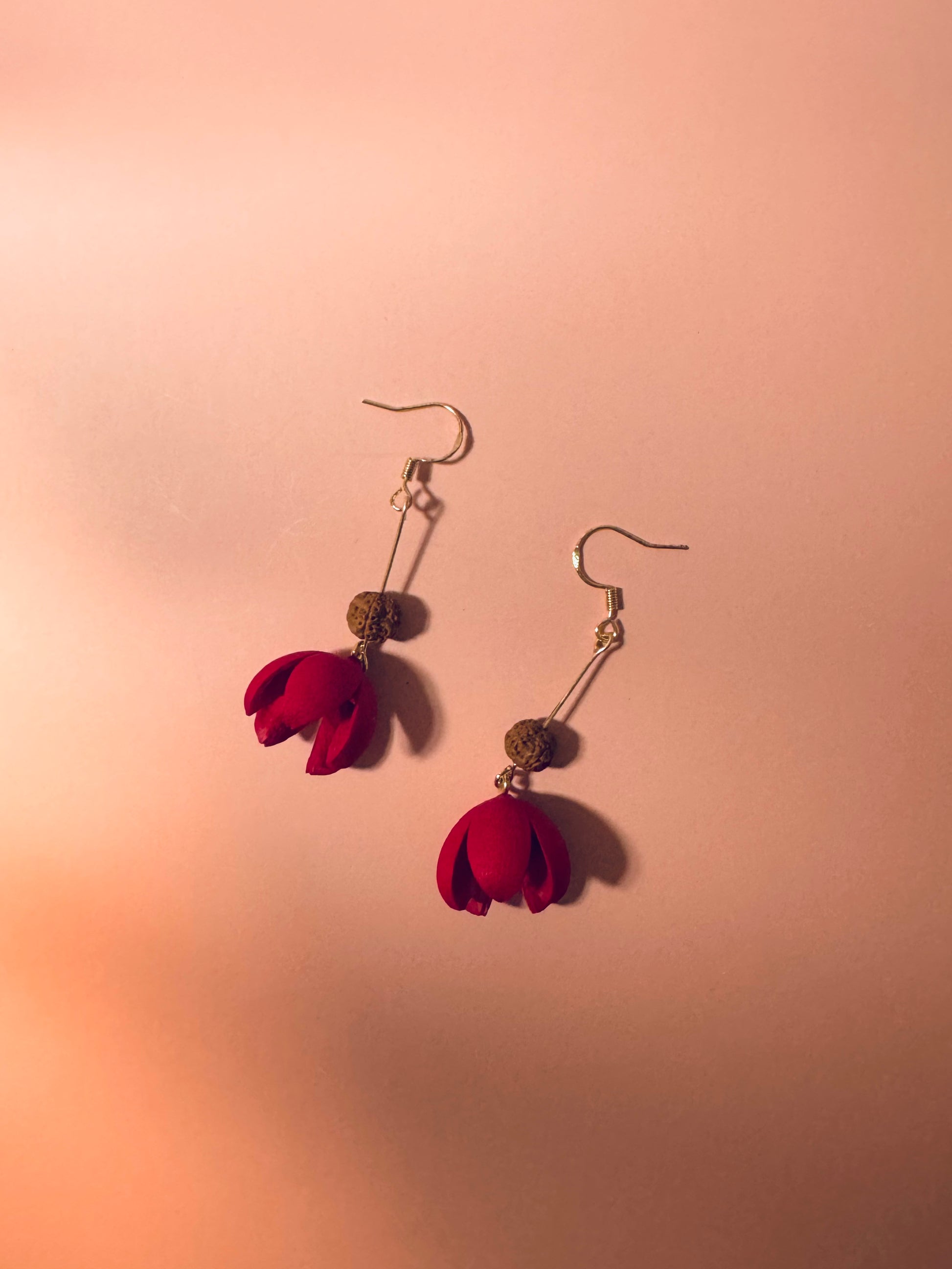 ❤️ Red Bodhi Blossom Earrings – 14k Gold