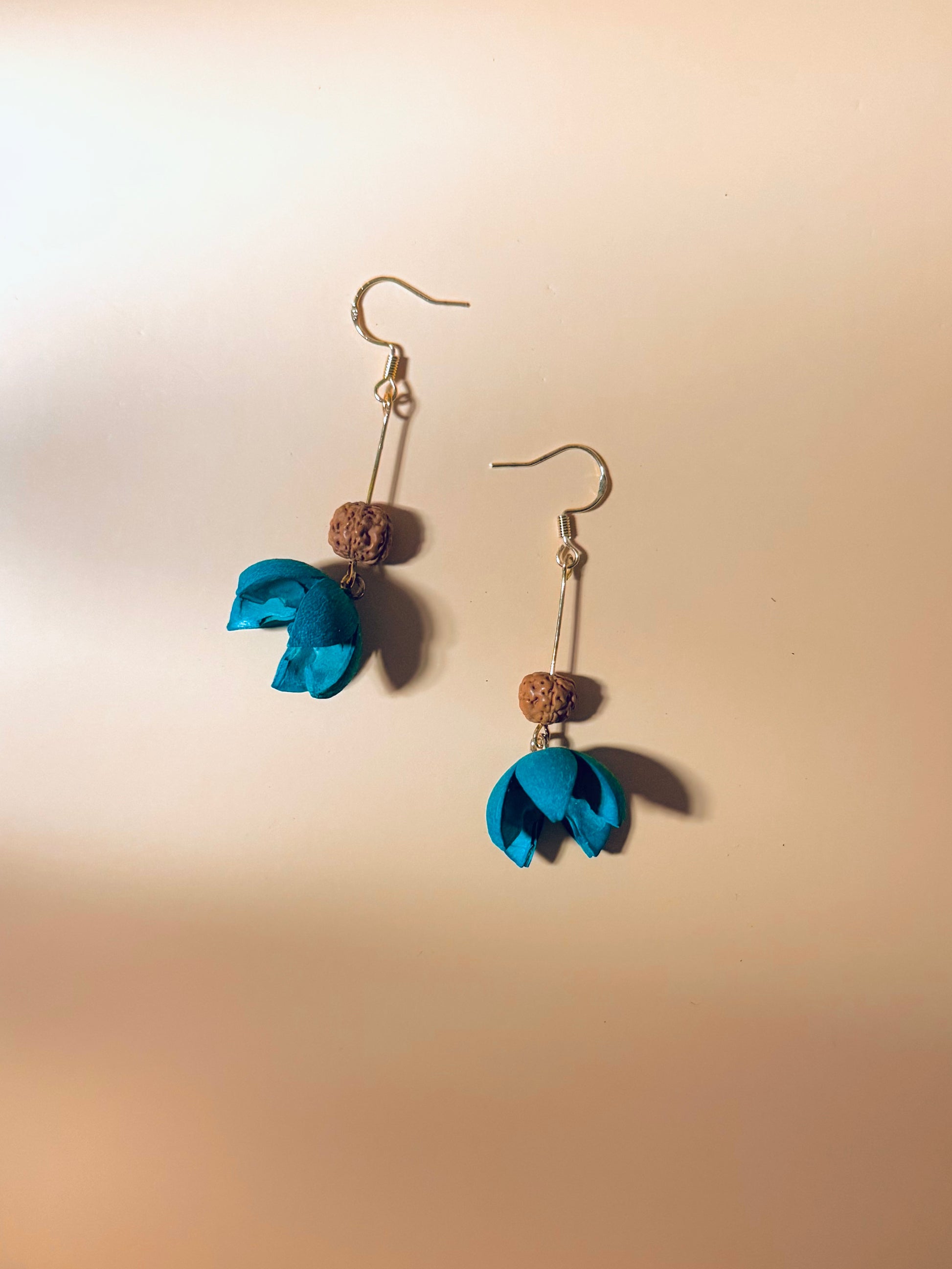 Handcrafted earrings featuring dried Open Smile seeds and Bodhi seeds, finished with 14k gold hooks.