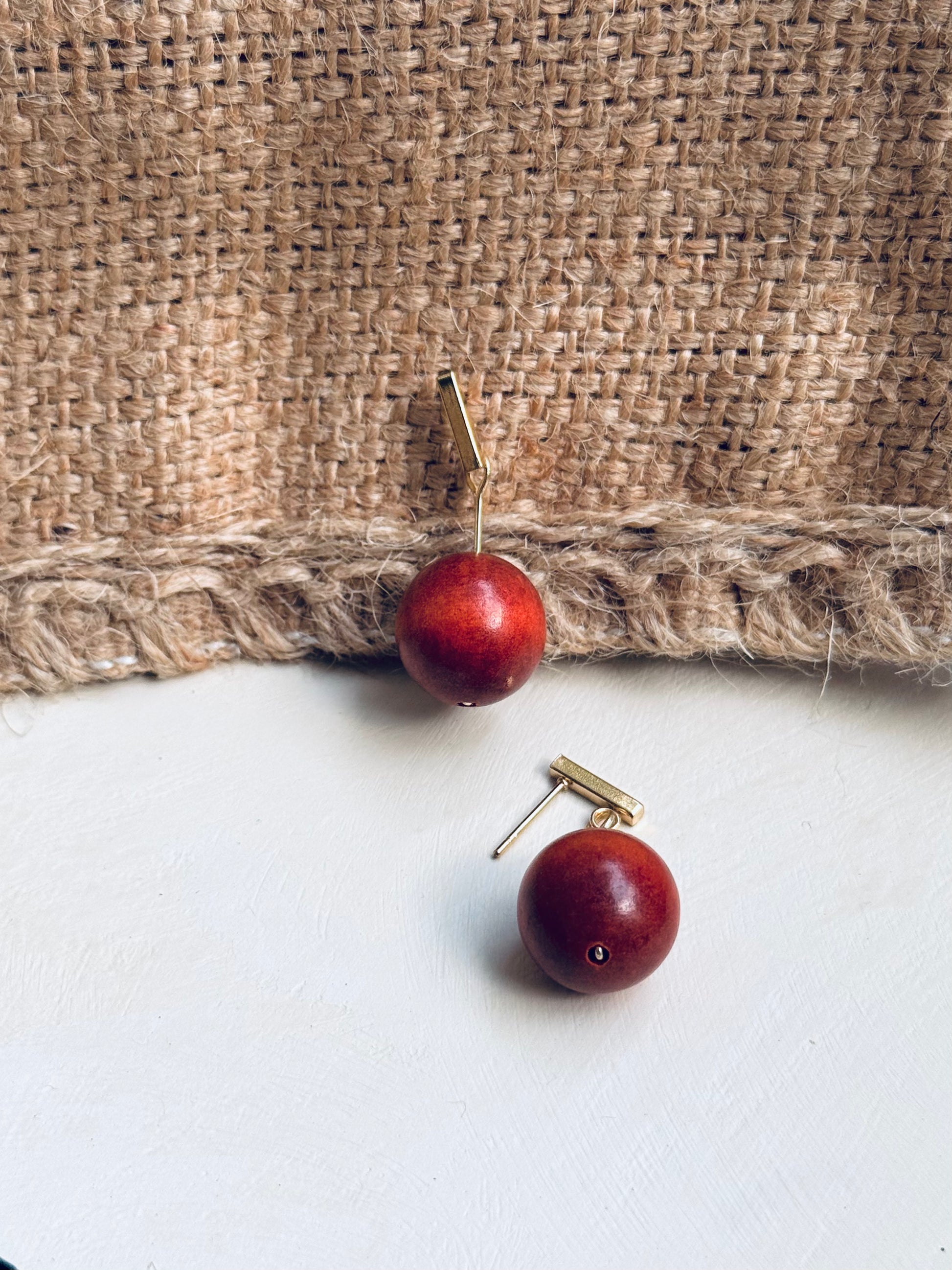 Elevate your natural style with these handcrafted earrings made from blood dragon wood, known for its rich, deep reddish hue and smooth finish. Minimalist yet bold, each piece is paired with 14k gold-plated studs for a refined and modern look.