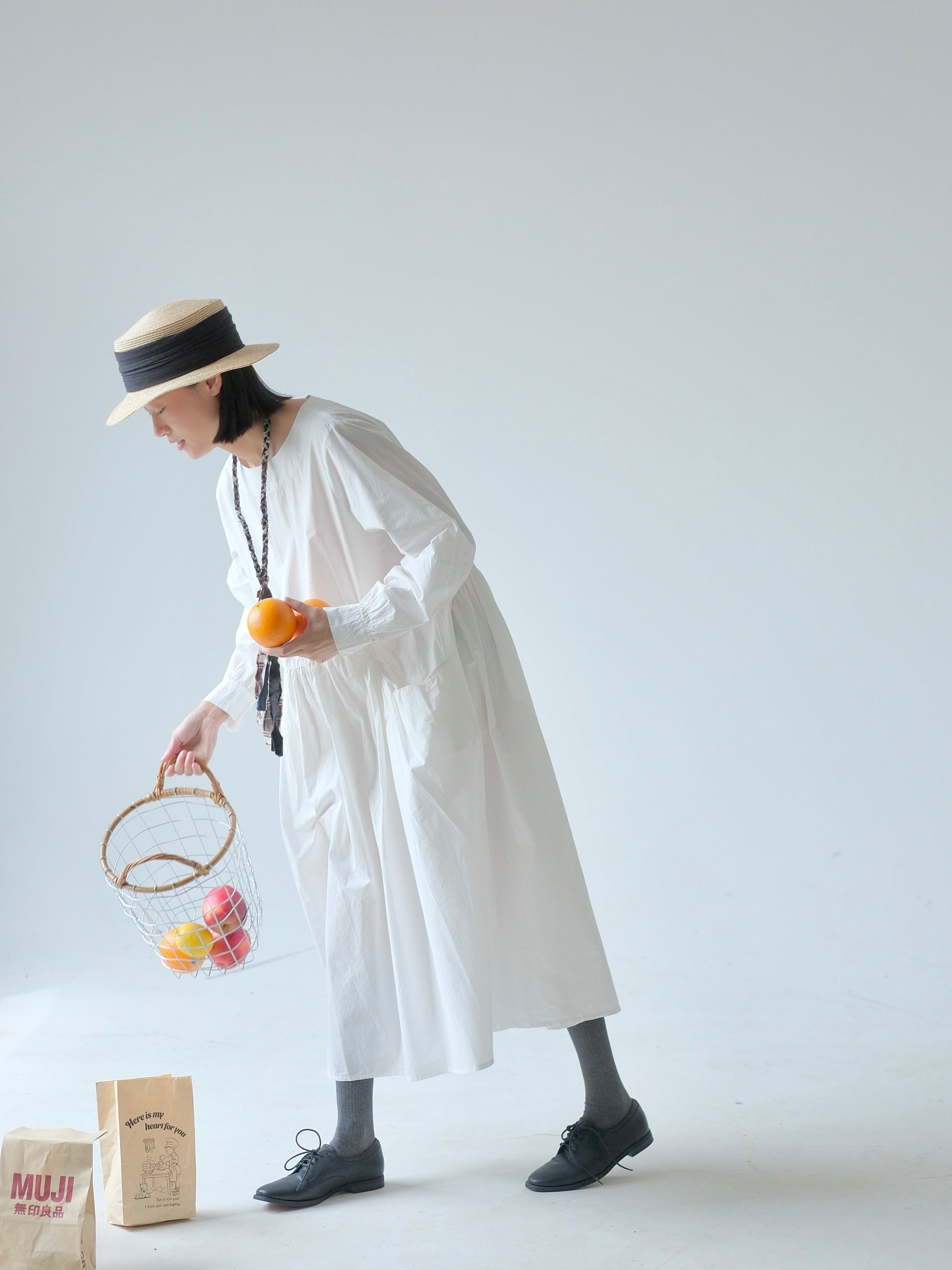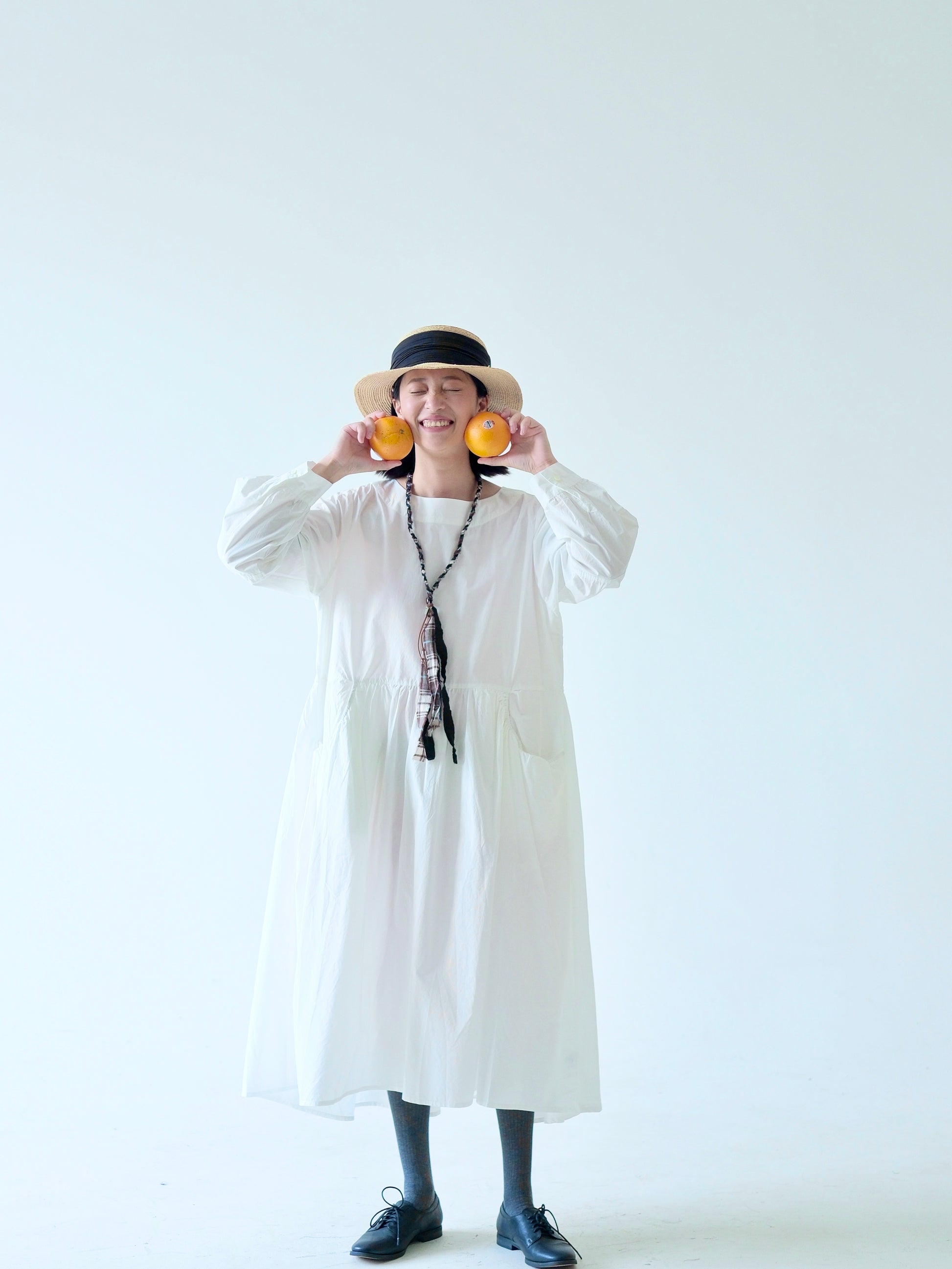 A soft, flowing long dress crafted from breathable cotton, designed for effortless everyday wear. The relaxed silhouette with gathered details adds a gentle volume, making it both comfortable and stylish. Features two side pockets for convenience and a timeless round neckline. Perfect for layering with accessories or keeping it simple and minimal.