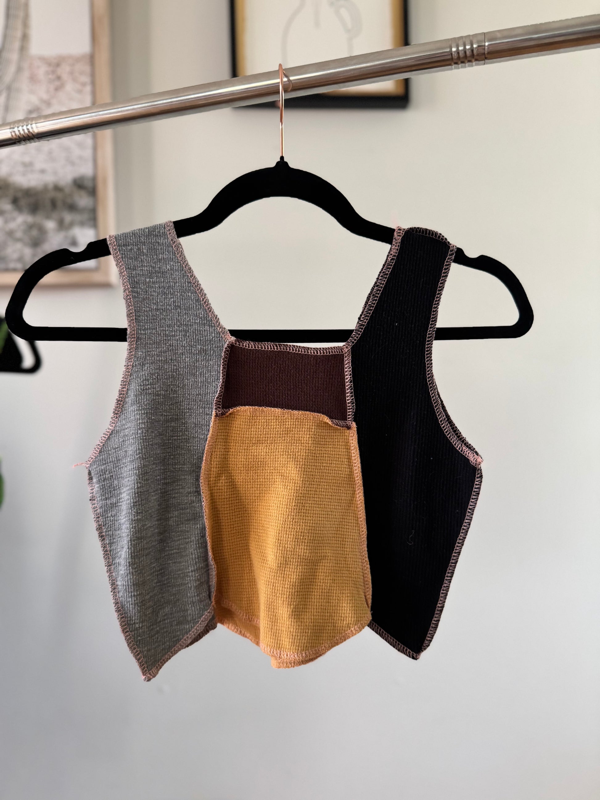 No two tops are exactly the same — each variation has its own unique color story and fabric combination, making every piece truly individual.