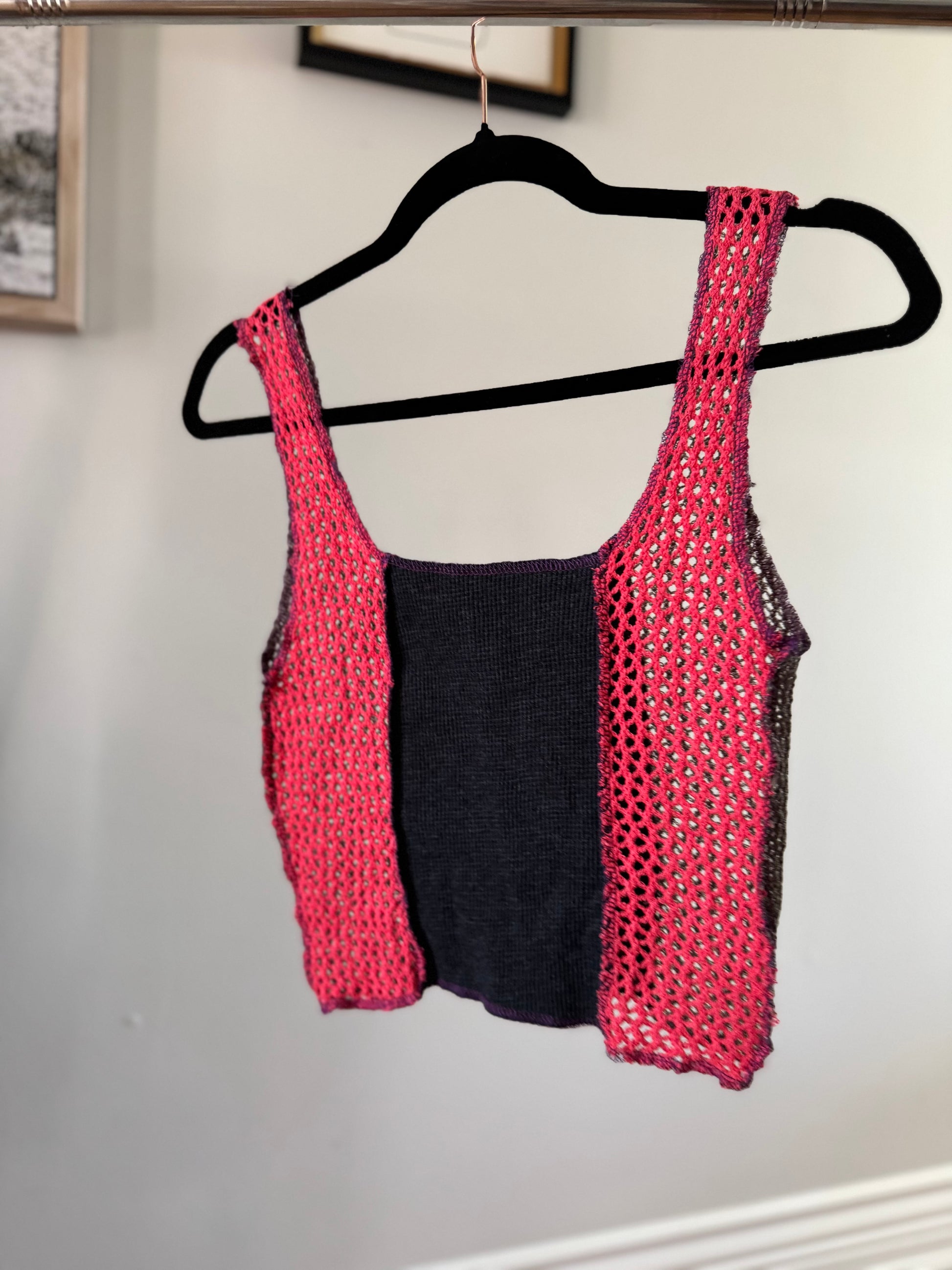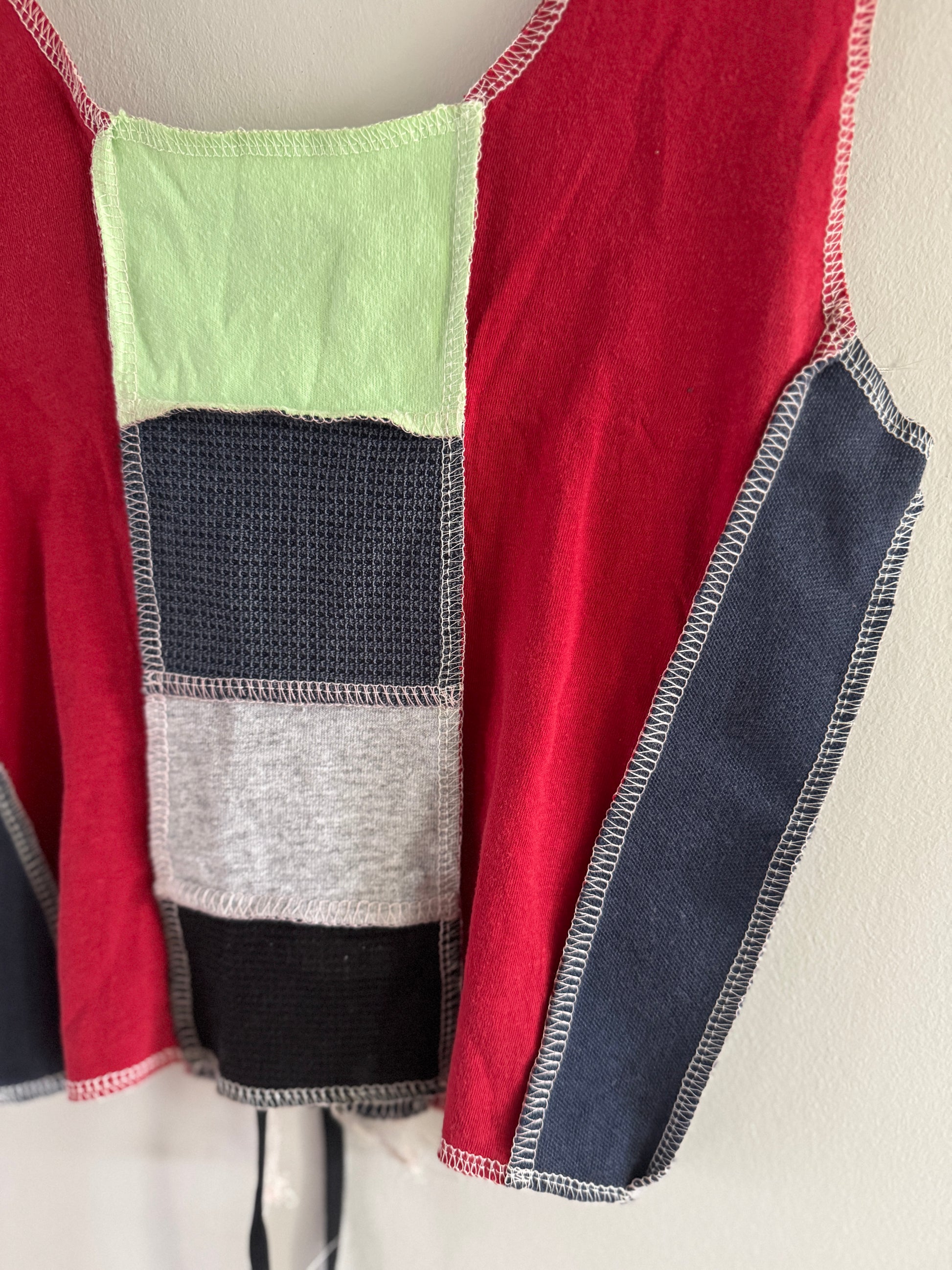 These deconstructed crop tops are designed with an intentionally raw, patchwork aesthetic inspired by Y2K streetwear and modern fashion. Each piece features exposed seams, mixed knit textures, and sculptural cut-out details that create a striking silhouette.