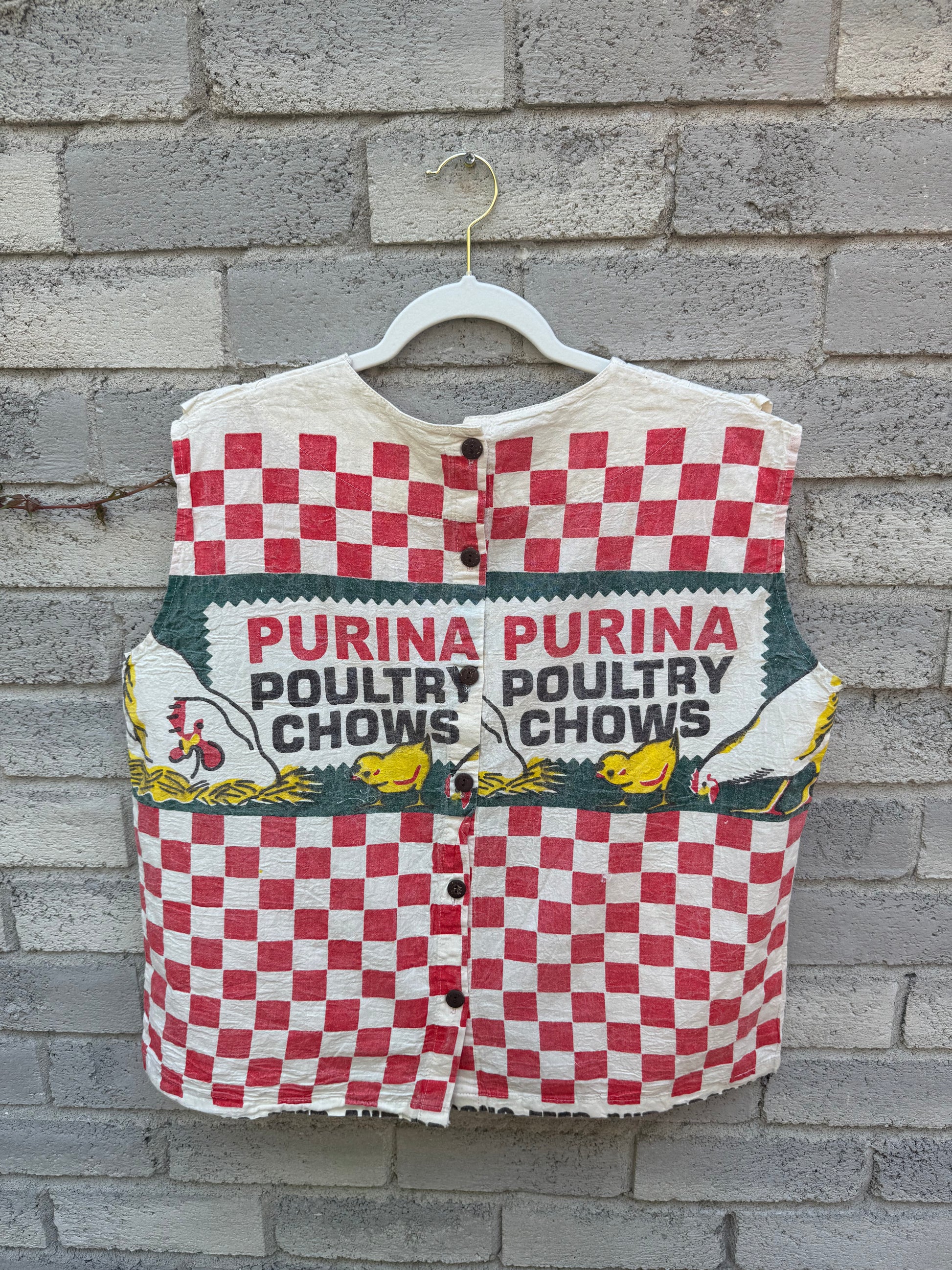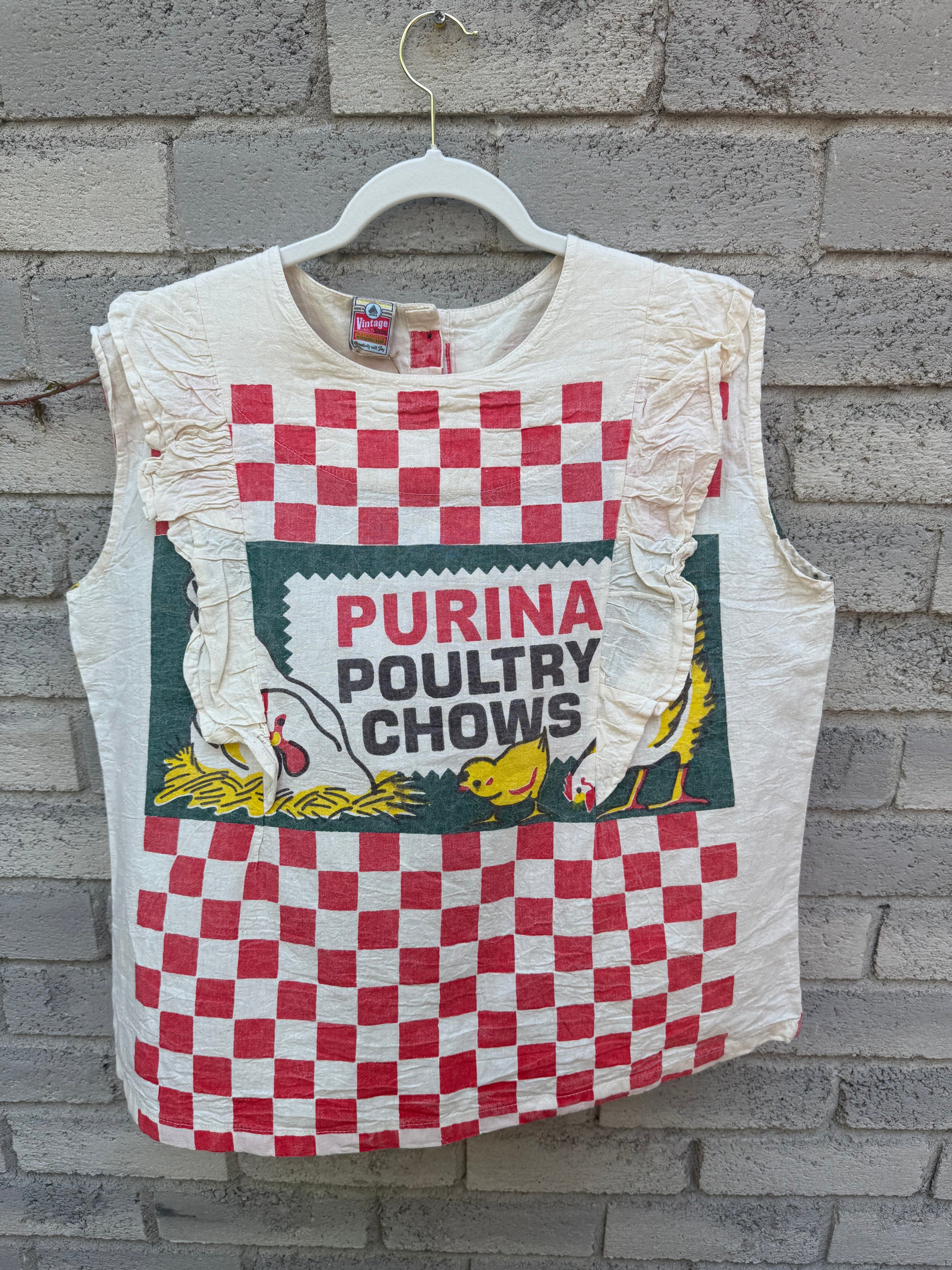 Ruffle-Shoulder Cotton Top β Vintage Feed Sack Style