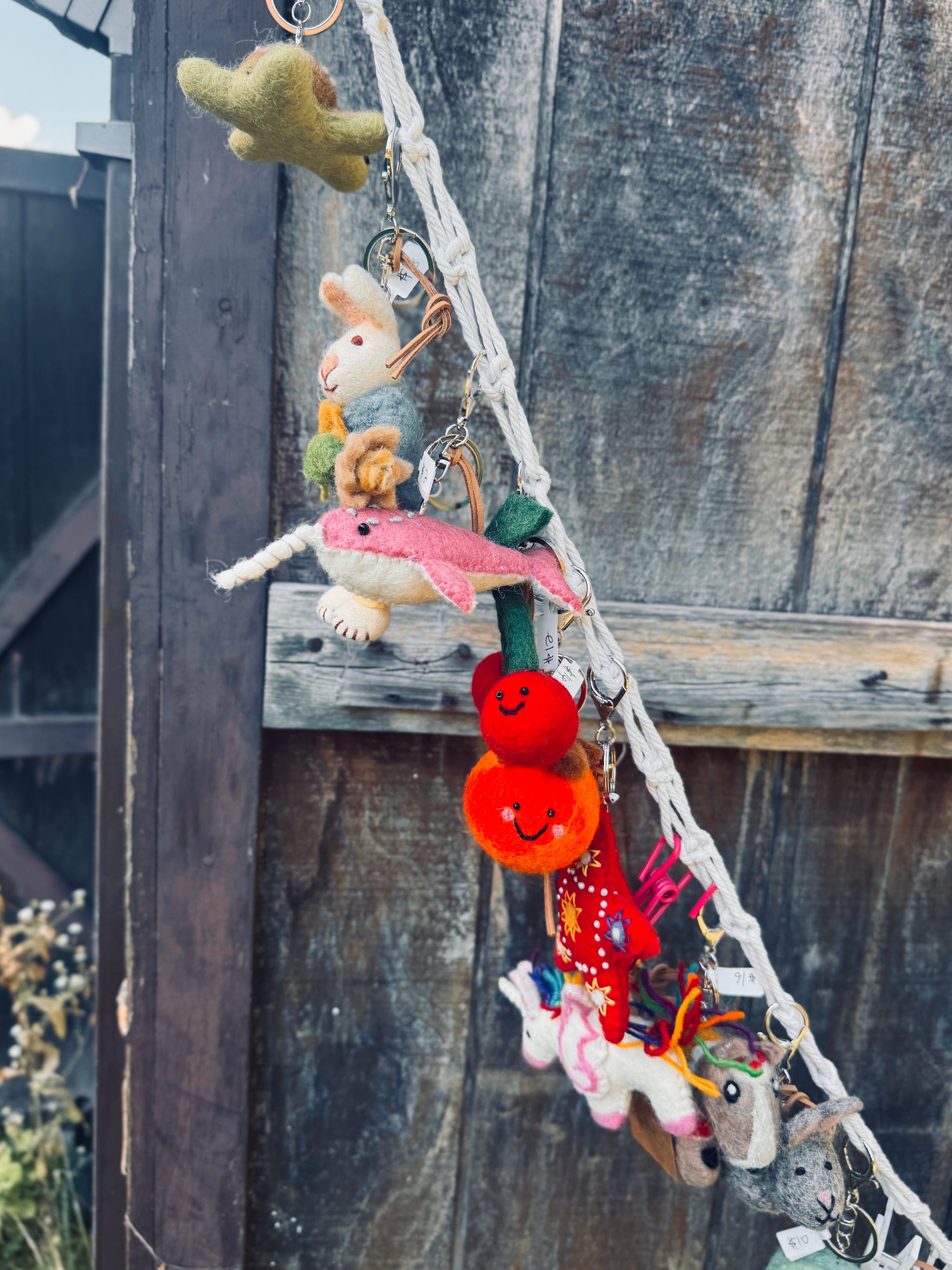 Each felt charm is lovingly handmade by artisans in Nepal using natural wool — every piece full of whimsy, texture, and personality.