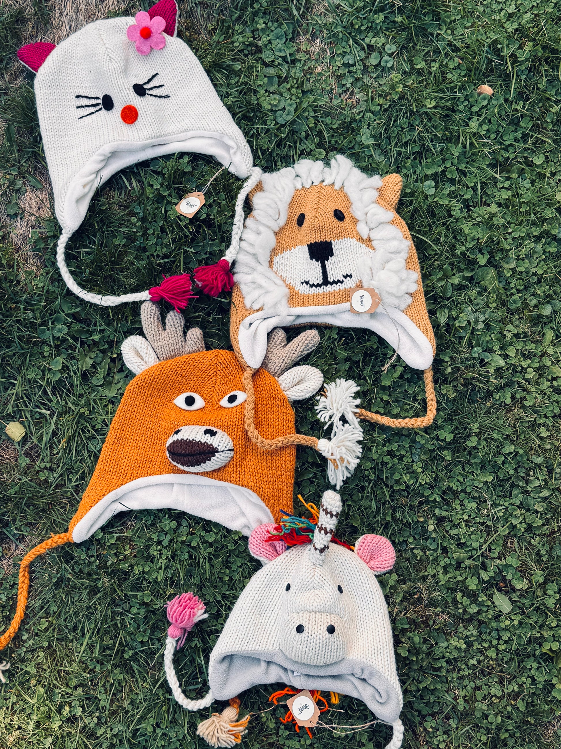 Handmade Animal Knit Hat – Cozy Winter Collection 🦁🦄🦌🐱