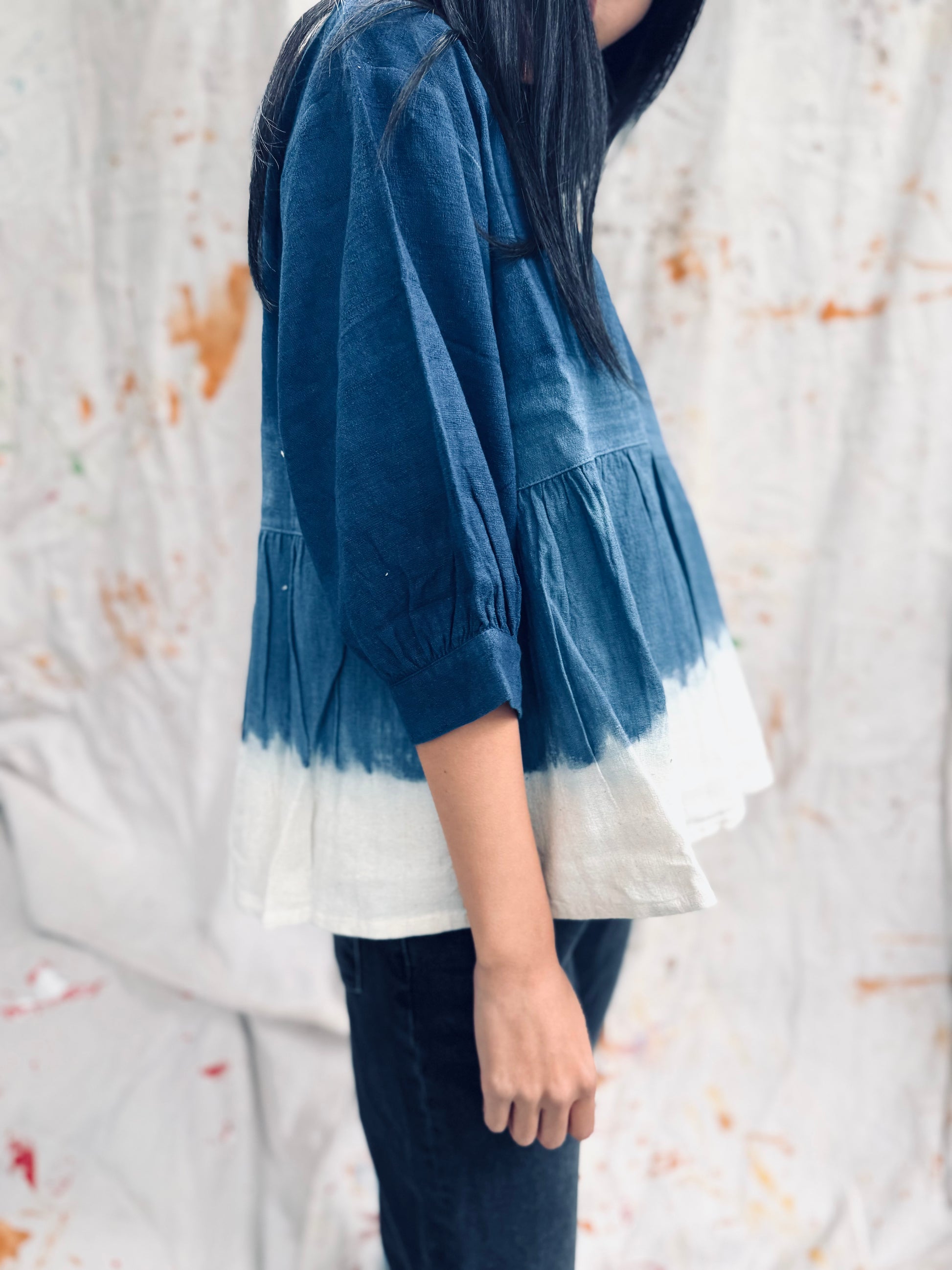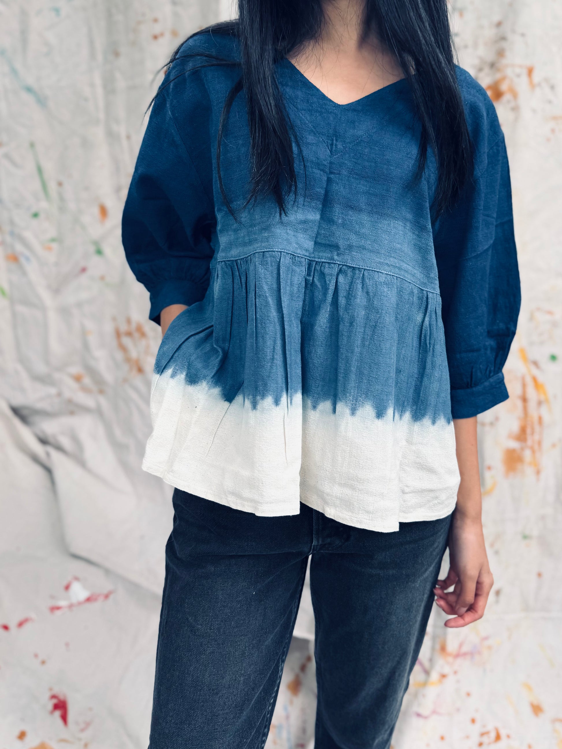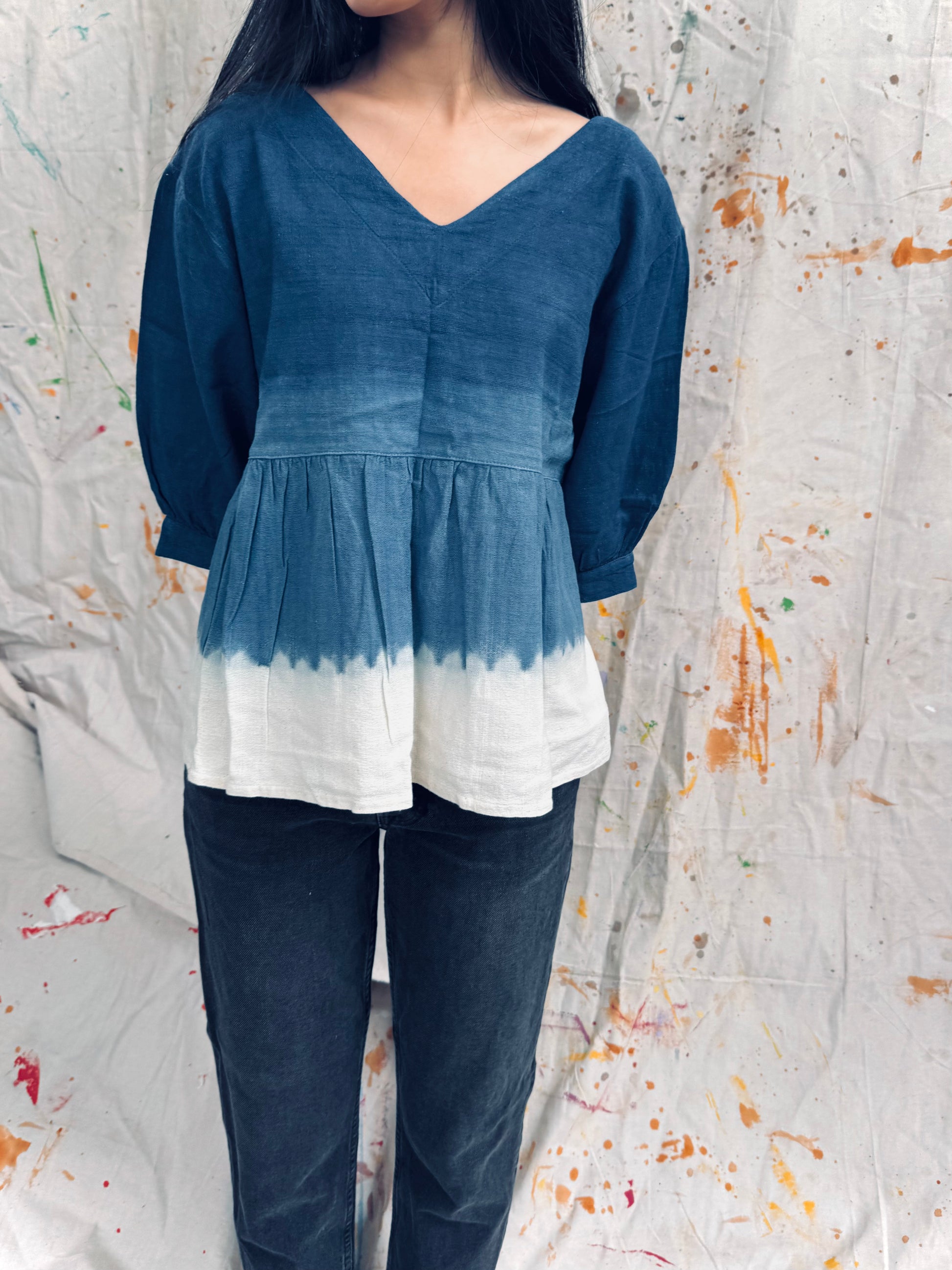 Bring effortless style to your wardrobe with this Indigo Dyed Peplum Top.