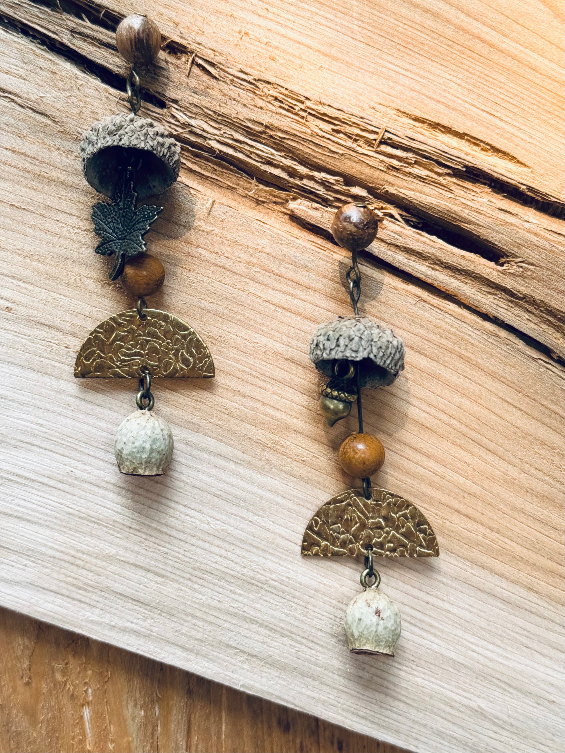 Embrace the magic of the forest with these enchanting earrings crafted from naturally sourced lucky fruit and real acorn caps, accented with silver findings. Lightweight, earthy, and full of woodland charm β perfect for nature lovers and boho souls alike.