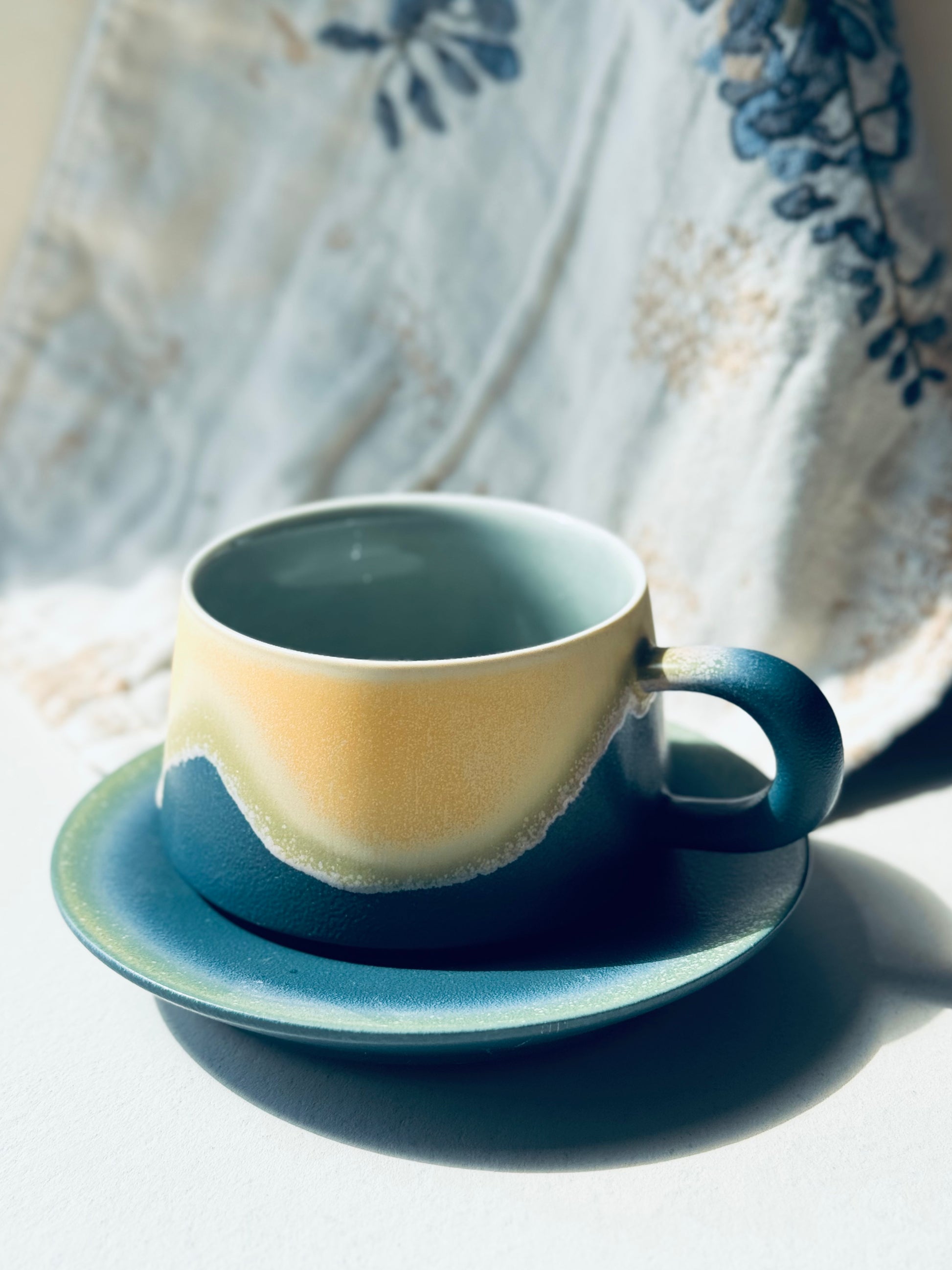 Ocean Mist – Ceramic Mug + Saucer | BoHo Bronte Exclusive