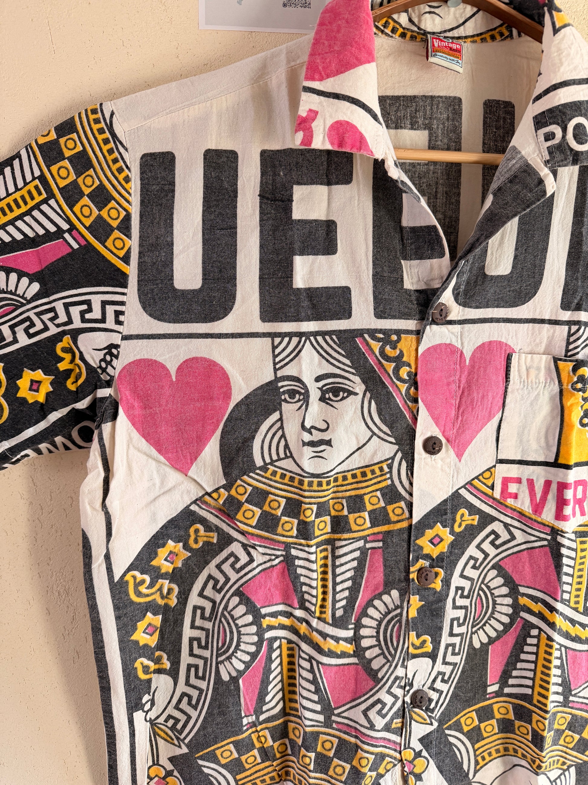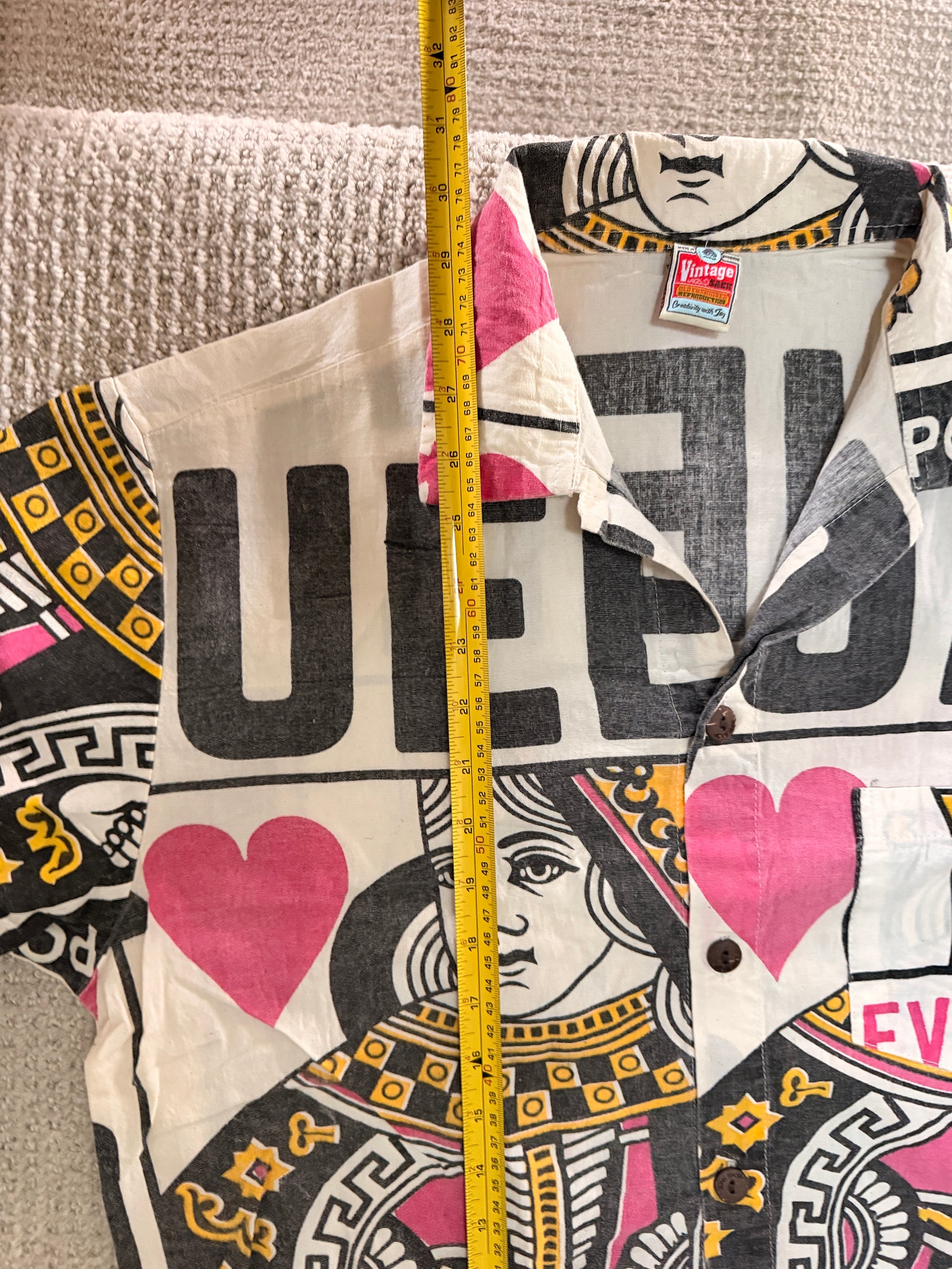 Queen Card Print Shirt – Washed Cotton Button-Up – Made in Thailand – L