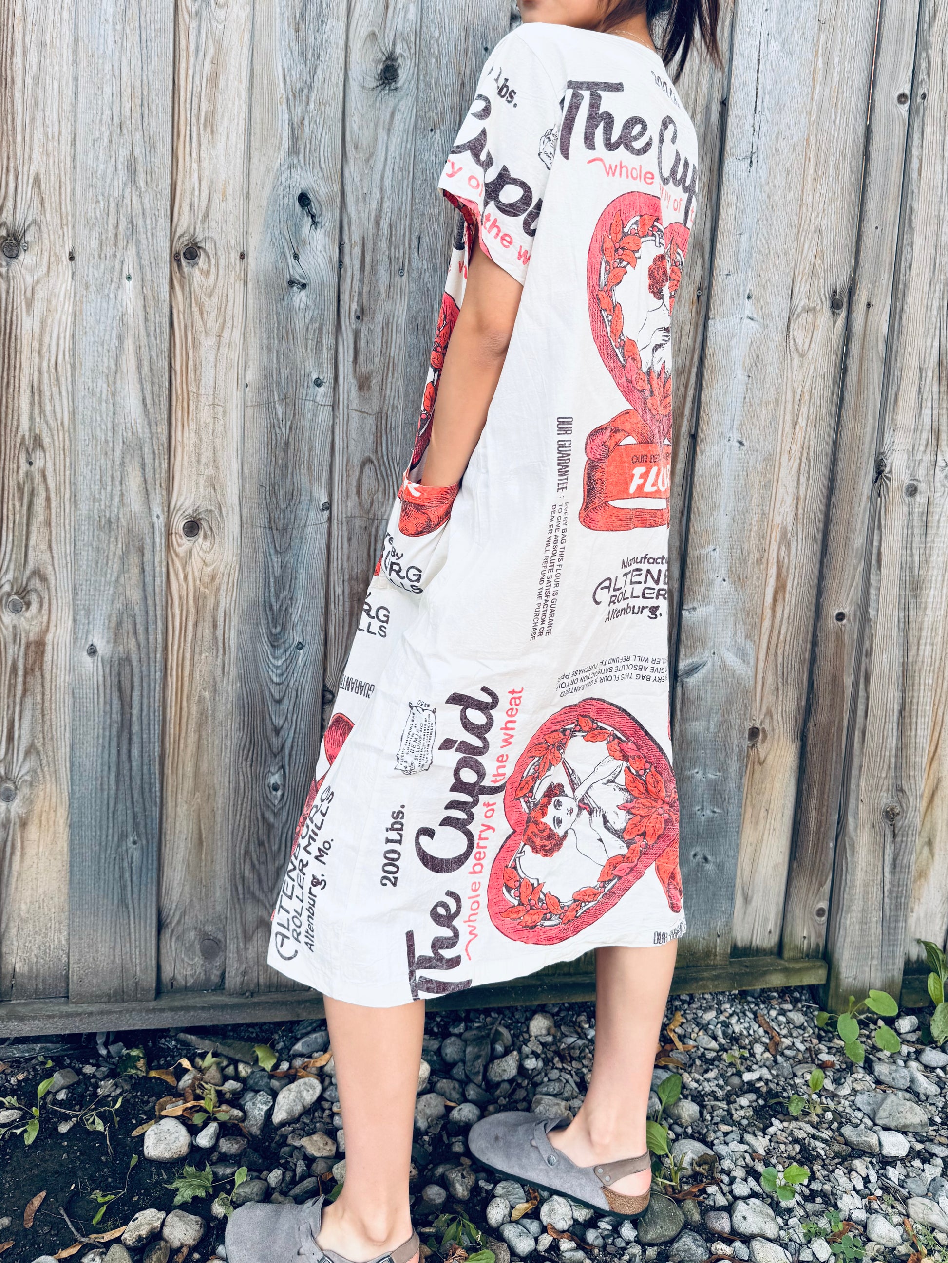 The striking Cupid graphic and flour‑sack text make it truly unique, while the loose, flowy cut keeps it easy and effortless.