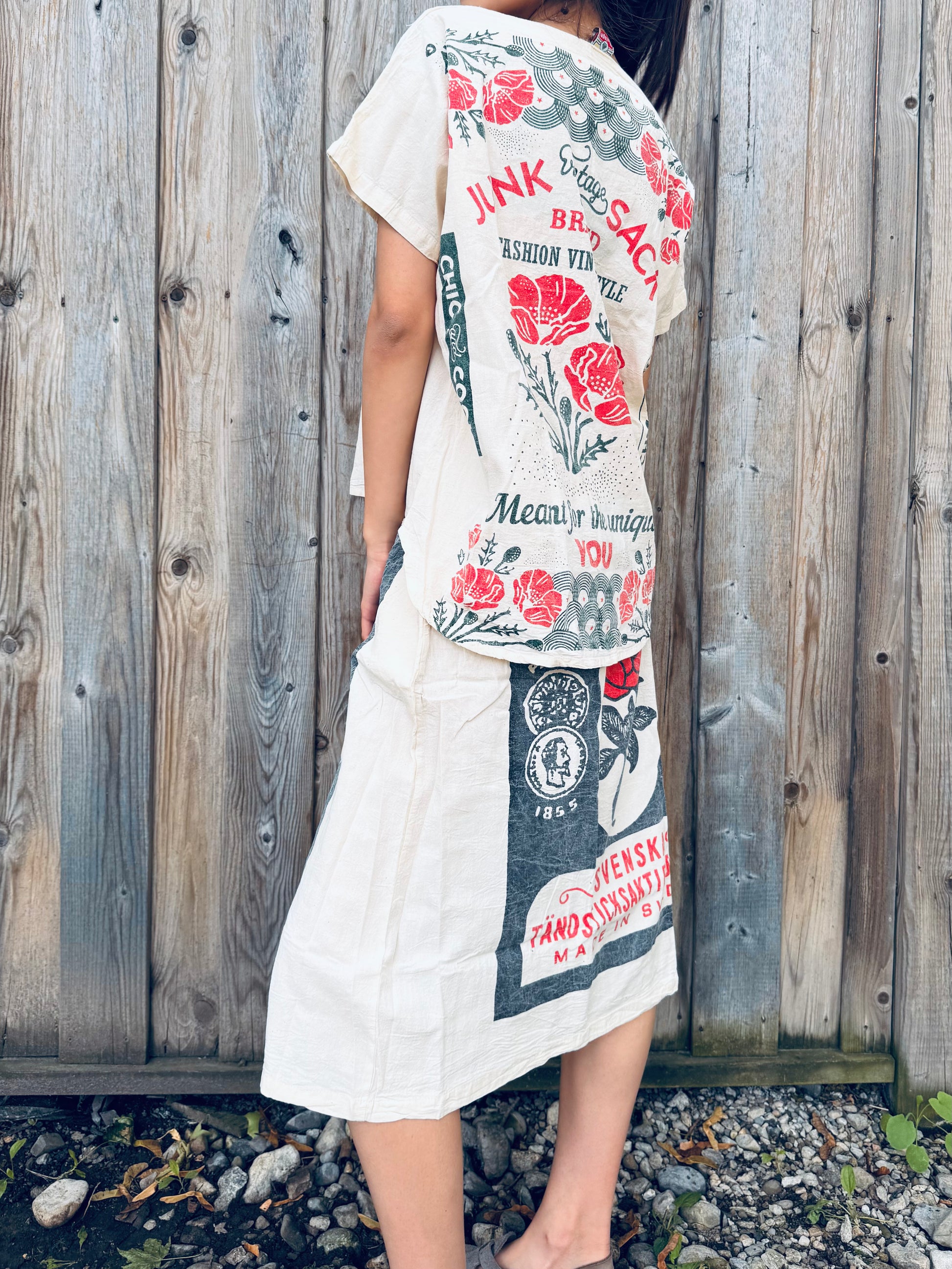 Add effortless charm to your summer wardrobe with this vibrant floral top, made from authentic vintage Thai sacks. Each one is unique with its own print placement, and the cotton-blend fabric offers a relaxed and breathable feel.