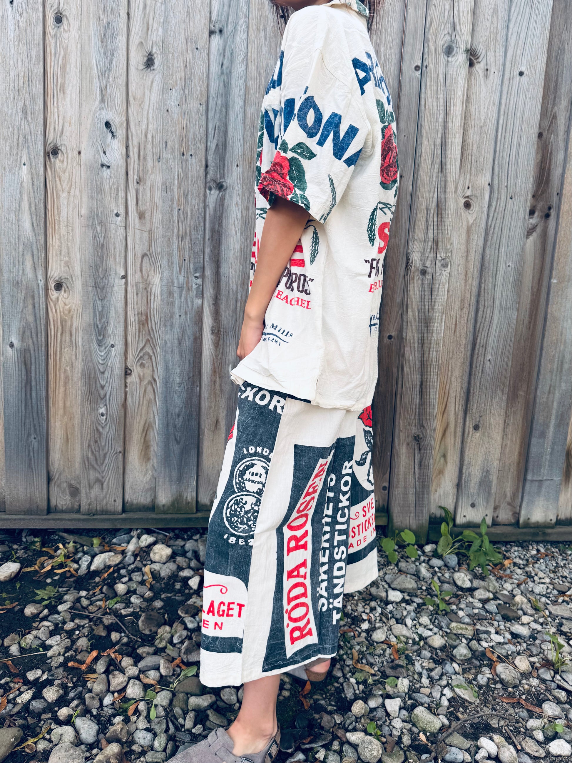 🌹This statement shirt blends vintage Americana charm with bold botanical energy. Made from upcycled flour sacks printed with nostalgic rose and typography graphics, each shirt carries a story from a different era. It’s breathable, relaxed, and makes a striking standalone piece or coordinates perfectly with the matching set.