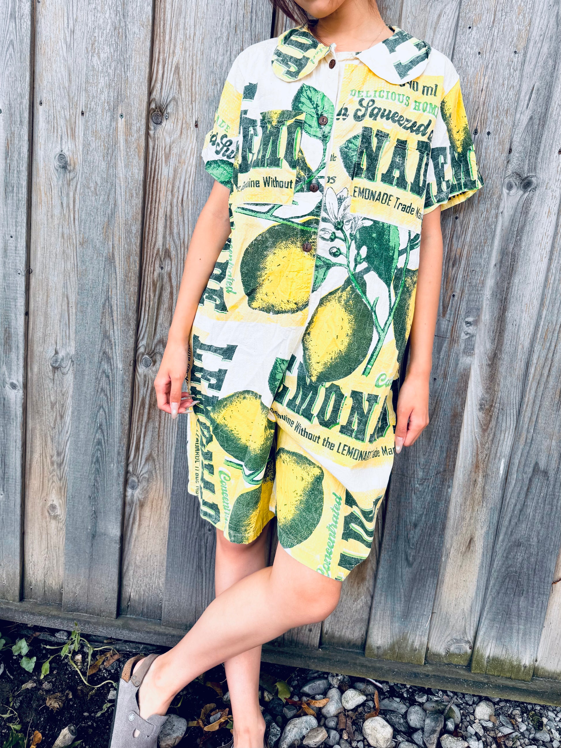 Vintage Lemonade Print Washed Cotton Jumpsuit – Fresh & Playful Everyday Wear