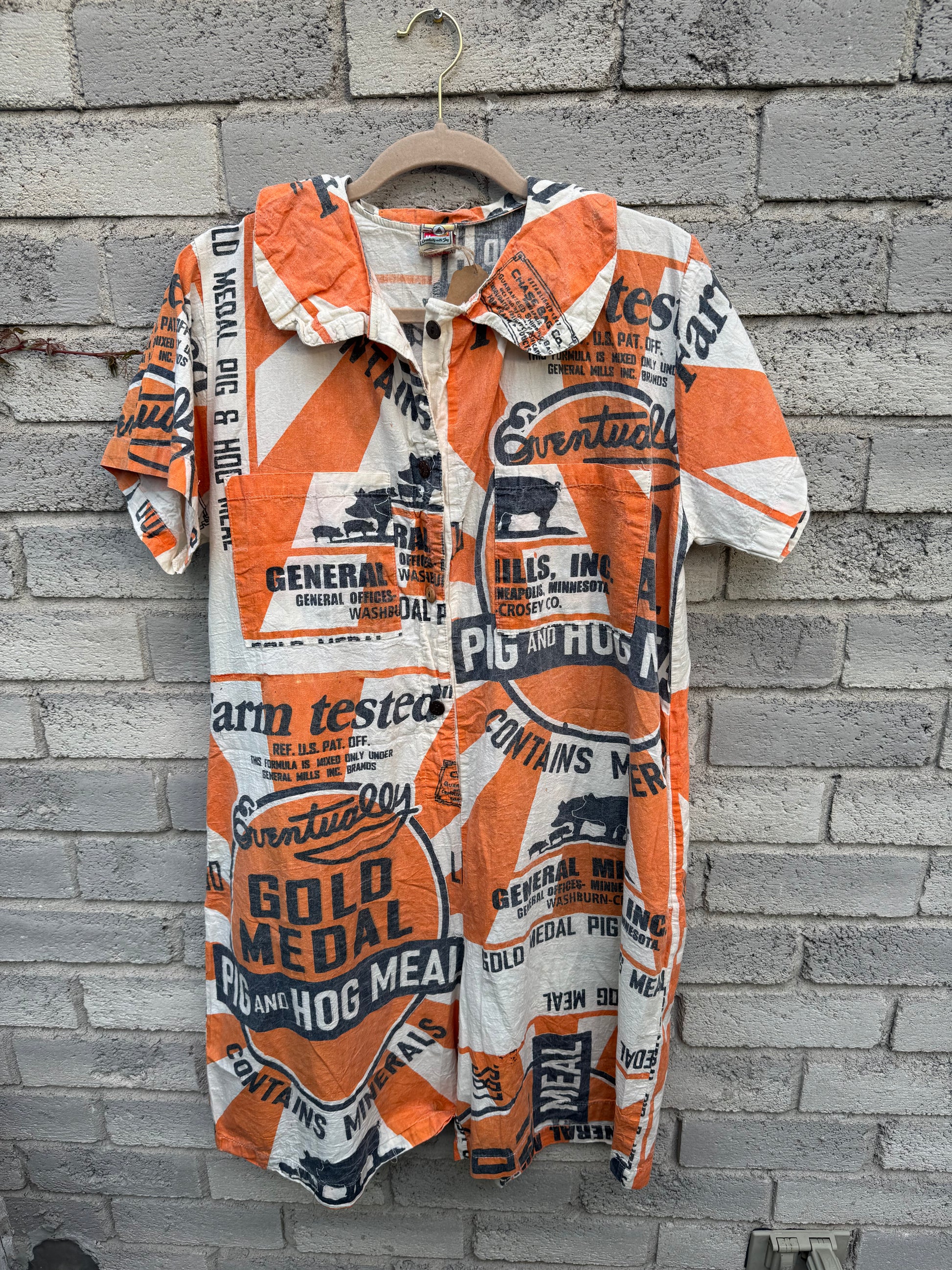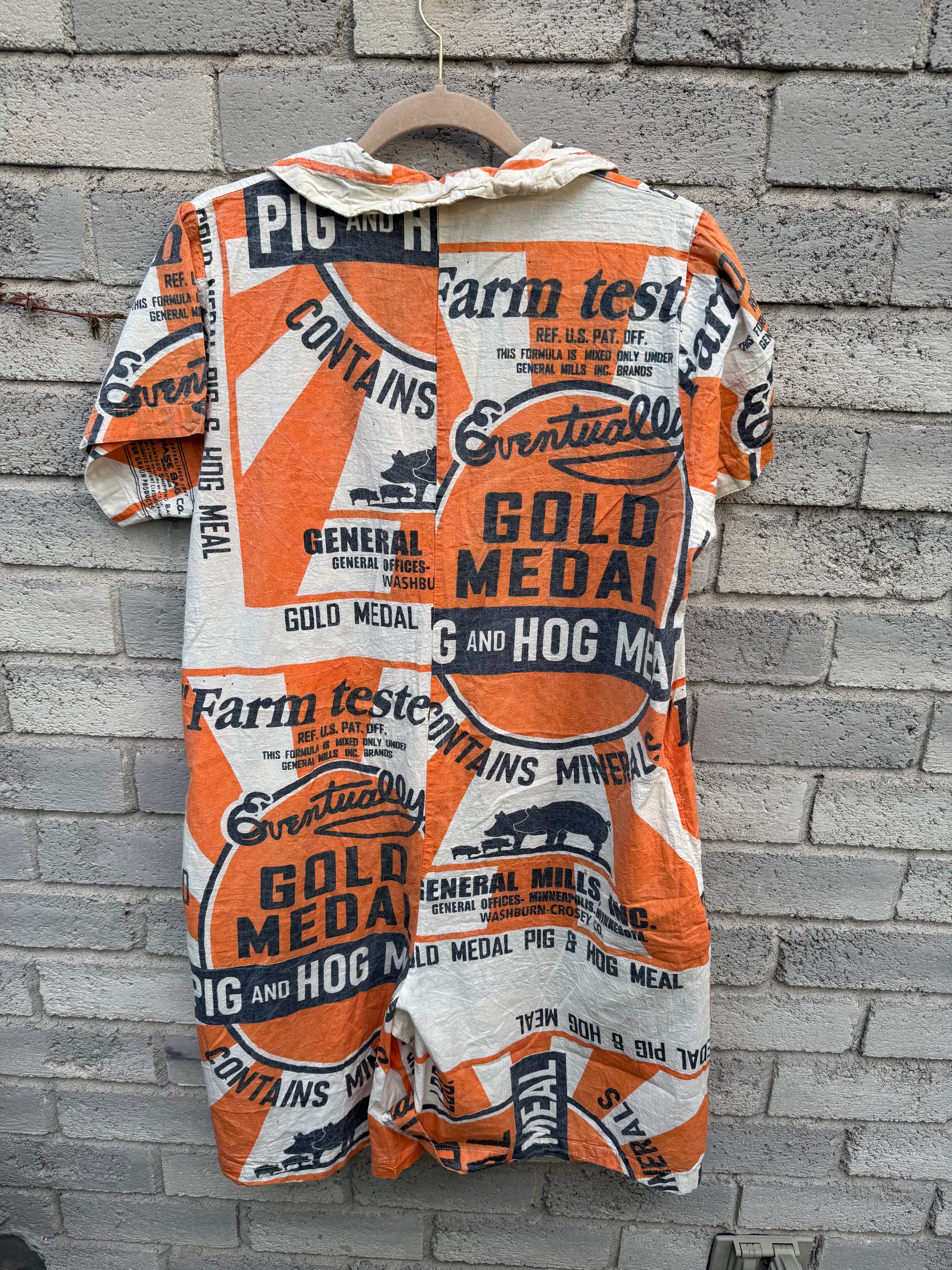 Vintage Rabbit Print Washed Cotton Jumpsuit