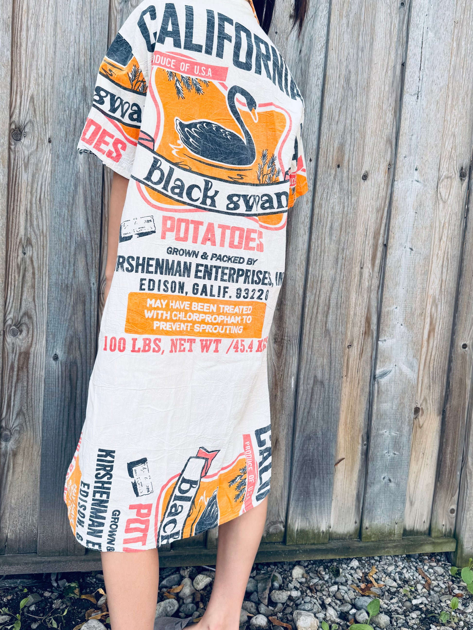 The bold swan and potato sack graphic print makes it stand out effortlessly, while the button‑front and loose cut create an easy fit.