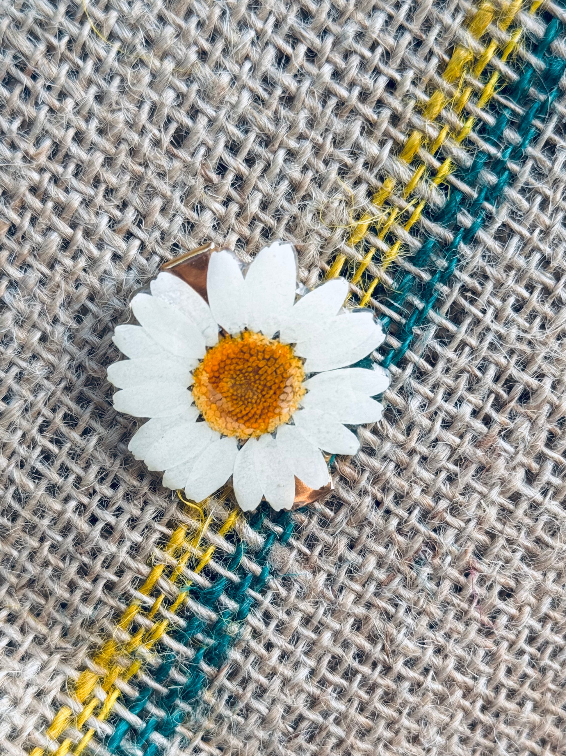 Each clip is handmade with real pressed flowers sealed under a glossy finish — cheerful, lightweight, and one‑of‑a‑kind.
